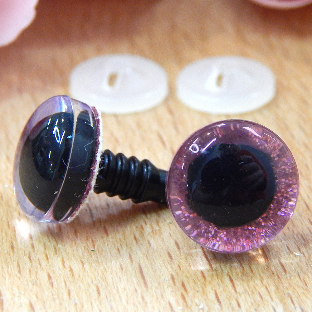 Вічка для іграшок блискучі, трапеція, 12 мм + кріплення, рожеві (2 шт)
