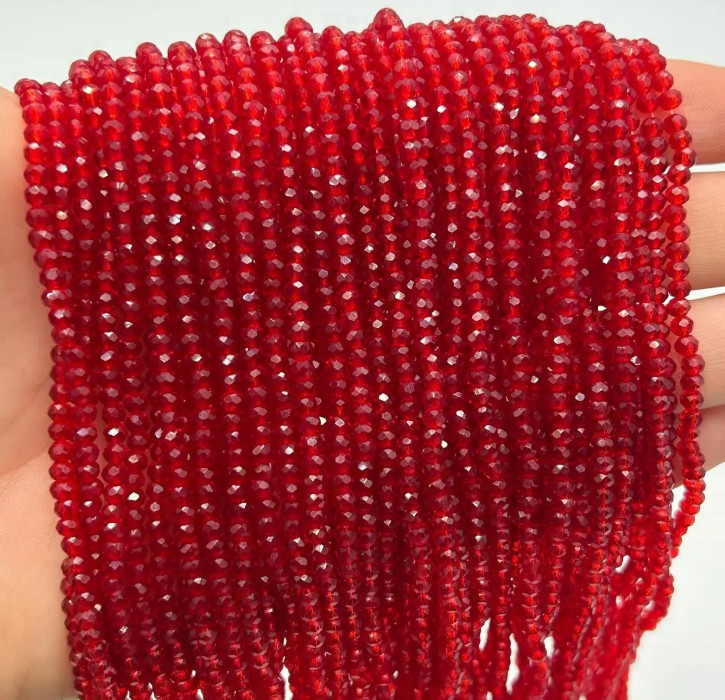 Намистини кришталеві 2,4х3 мм, червоний прозорий (уп.165-175 шт)