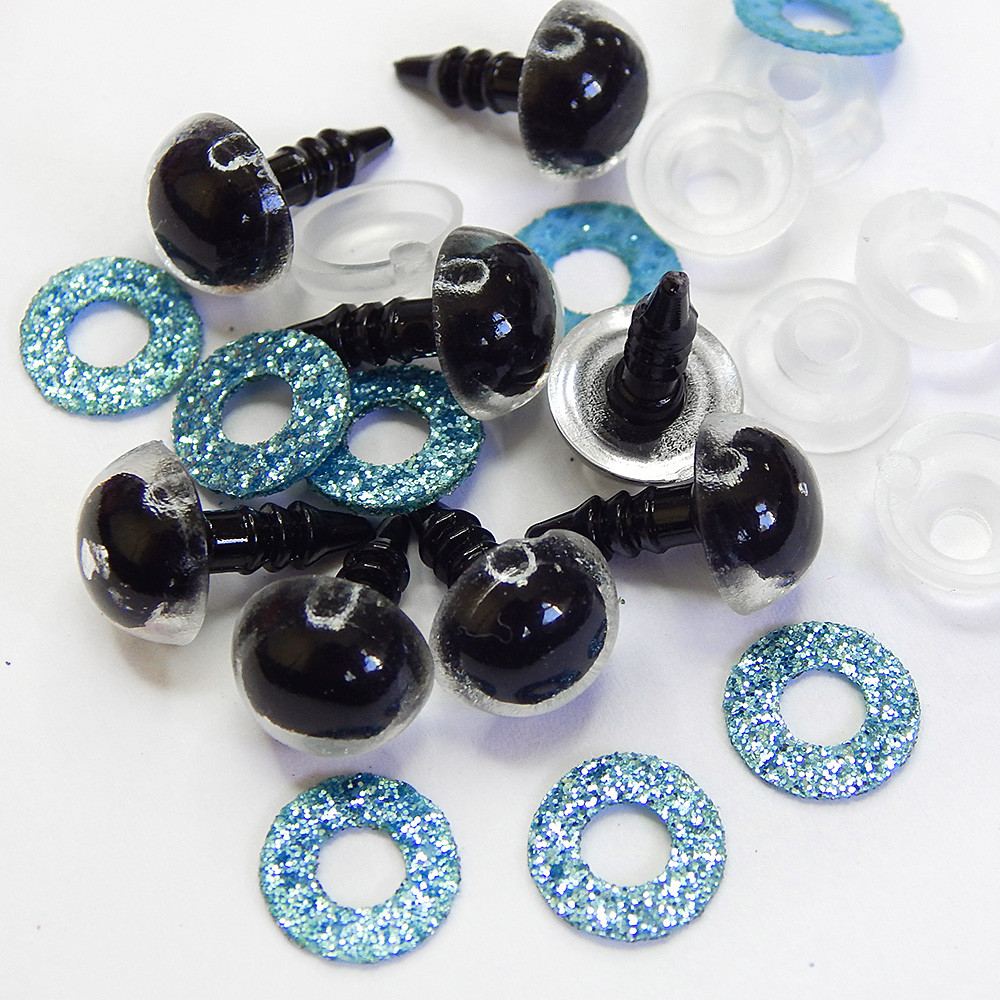 Вічка для іграшок блискучі, напівсфера, 10 мм + кріплення, світло-блакитні (2 шт)